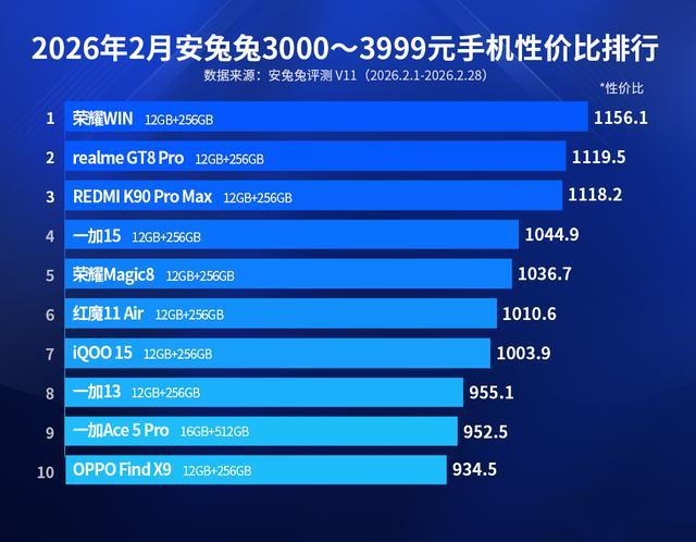 今天分享的是2026年2月安兔兔次旗舰性价比榜单,价格区间是3000-3999元,最大的看点是部分机型的到手价格已经上涨,有需求的小伙伴早买早享受吧。其中小米17跌出前十名,如果按涨价后的到手价格,小米17进入榜单前十名还是挺轻松的。排名第一的是荣耀WIN,到手价已经从3199元涨到了3499元深圳配资开户,原因应该是部分促销和优惠券没有了。