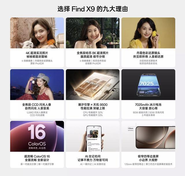 排名第十的是OPPO Find X9,12GB+256GB版到手价3899元,和榜单中的3597元相比到手价也在涨。该机属于很均衡的影像旗舰,性能上是天玑9500和潮汐引擎,采用6.59英寸护眼小直屏,续航组合是7025毫安时+80W+50W双重闪充。后置5000万潜望式长焦三摄组合,新增丹霞原彩还原镜头和多焦段人像闪光灯,机身抗跌防摔且支持满级防尘防水认证,16GB+512GB版到手价4799元。
