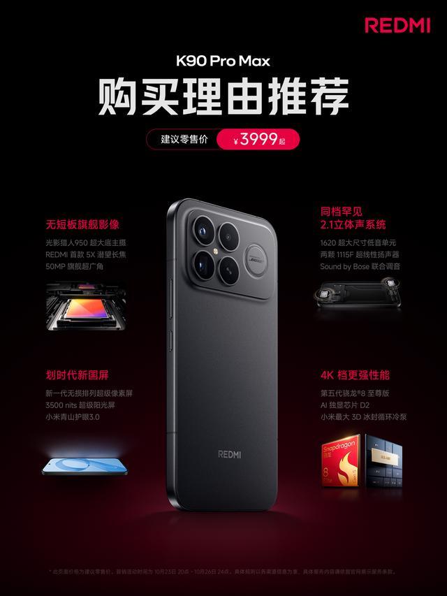 排名第三的是红米K90 Pro Max,12GB+256GB版到手价3499元,是目前极少数没有涨价的影像旗舰手机,16GB+512GB版到手价4299元深圳配资开户。除了顶级性能以外,该机最核心的卖点是2.1立体声豪华三扬,是目前智能手机的音频天花板。其他配置也很旗舰:比如6.9英寸超级像素护眼屏、5X潜望式长焦镜头,7560毫安时电池+100W+50W双重闪充,还有满级防水、金属中框,超声波指纹识别和AI独显芯片Q2等等。