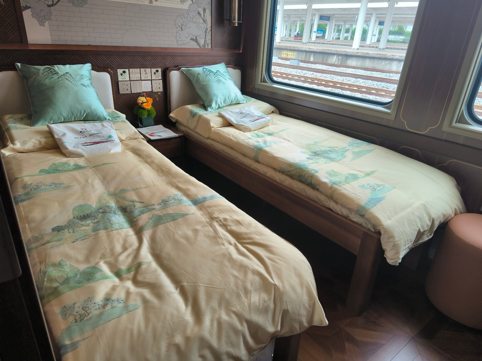 记者注意到,旅游专列内设置2人间、3人间、4人间多种房型,全部配备独立卫生间、干湿分离沐浴间。2人间配备标准单人床和双人床,3人间、4人间增设隐私拉帘,上下铺均配备独立观景窗。