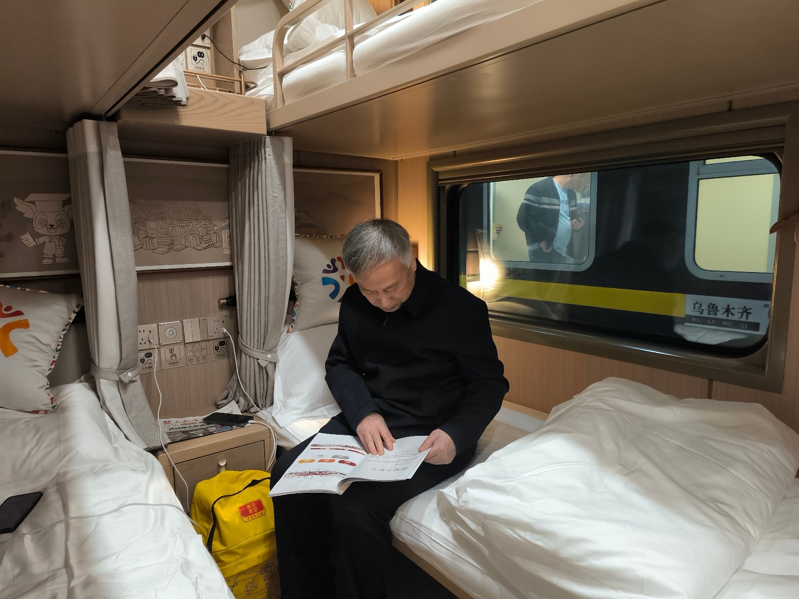 “针对老人群体占比大的特点,我们做了一系列适老化改造,如在细节处加宽床铺、增设隐私拉帘,安装SOS紧急呼叫按钮,为银发族营造宁静祥和的旅途氛围。”张静称,全车已实现WiFi覆盖,每个包厢配备智能交互屏和AI智能管家系统。