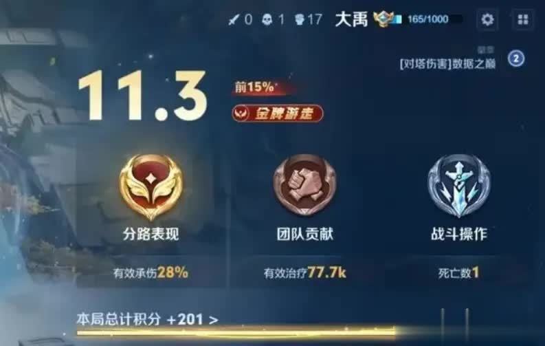 这种反差并非英雄数值异常,而是玩家对评分系统的理解,跟不上系统设计逻辑。若还用“保护射手就是好辅助”的老观念玩大禹,很难拿到金牌。