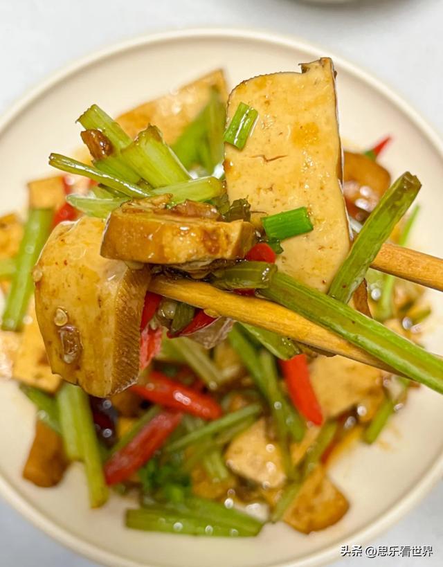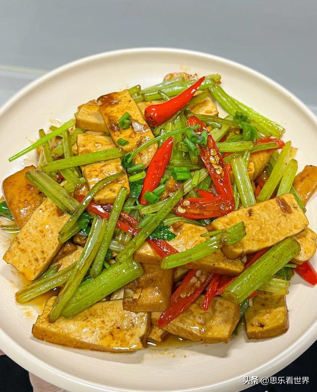 芹菜平肝清热、降压去烦,是经典清肝菜,能疏通肝火、润肠排毒。香干植物蛋白丰富,清淡低脂,护肝又饱腹,适合压力大、易怒、口苦的人日常吃。